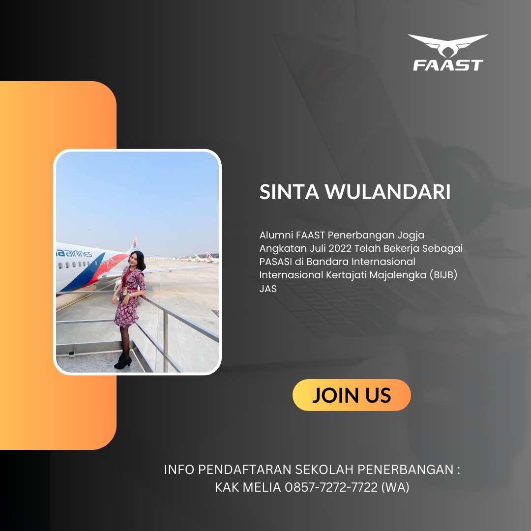 Saat ini sekolah FAAST Penerbangan sedang membuka pendaftaran siswa baru. Bagi kalian yang ingin bergabung bisa menghubungi admin pendaftaran : Kak Melia 0857-7272-7722